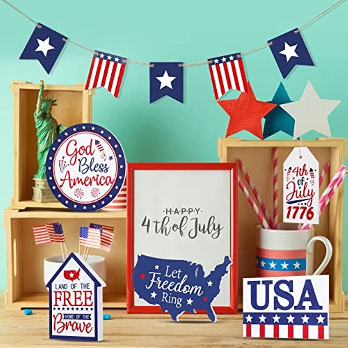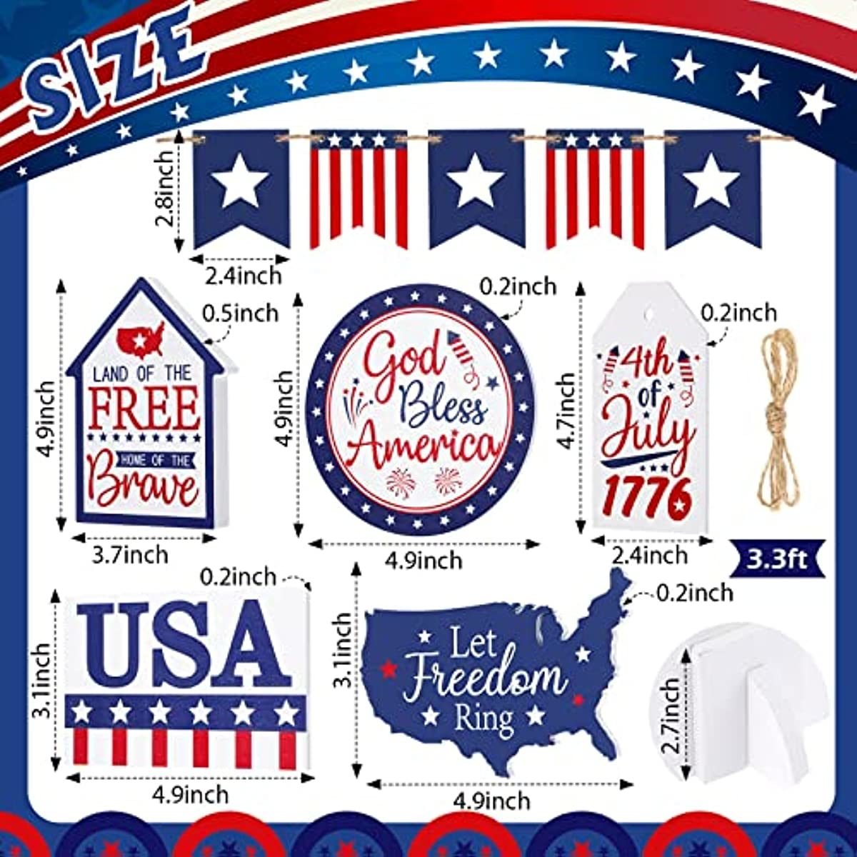 Exquisite Design: font designs for wooden summer decorations include [GOD BLESS AMERICA]; [4th of July 1776] etc.;The classic and retro Independence Day pattern symbolizes hope and freedom; and can convey good wishes to you and others