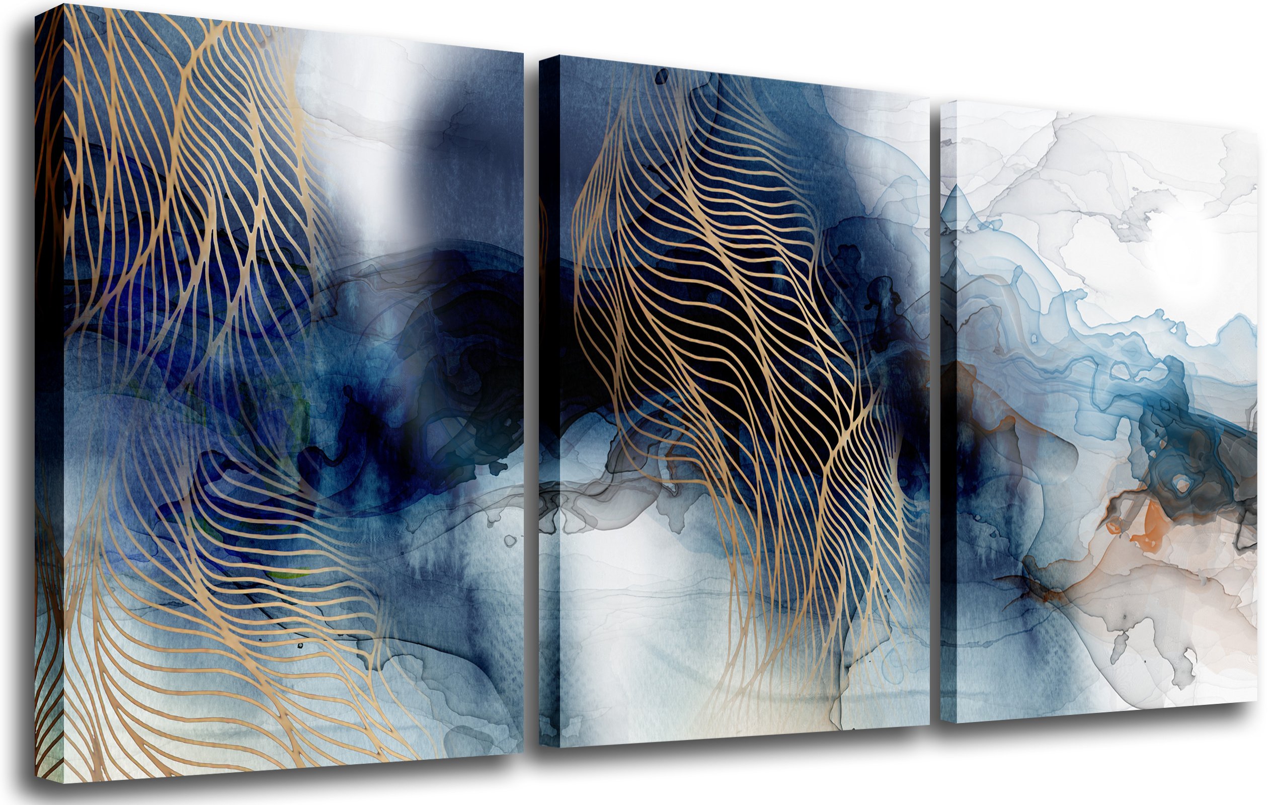 1.Abstract Canvas Wall Art:High definition modern blue landscape stripe canvas printing artwork,abstract watercolor Stripe wall art prints picture photo printed on high quality canvas.