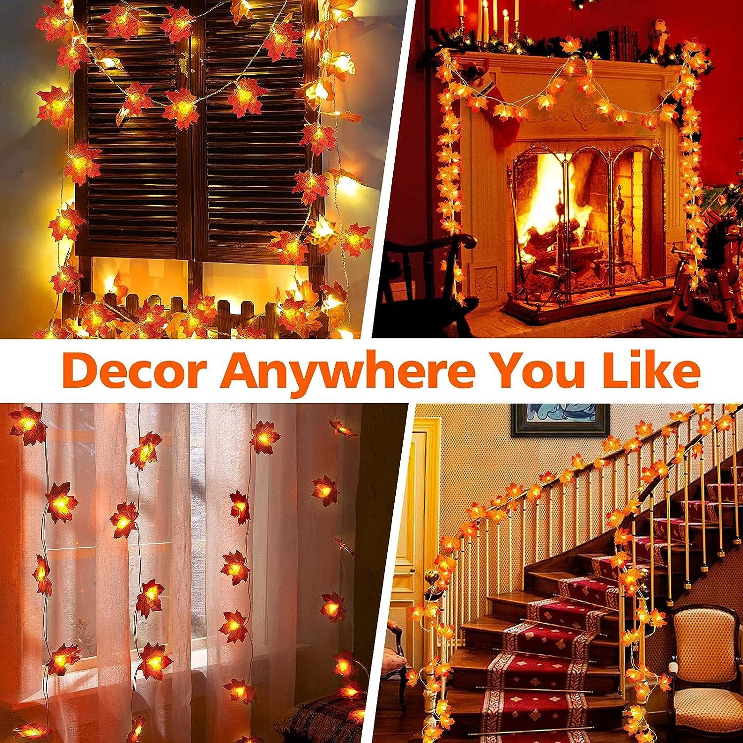 1.DIY & LIGHT UP FALL DECOR: 6m 40 led lights & leaves for each fall home room decor, enough to meet your diverse needs.