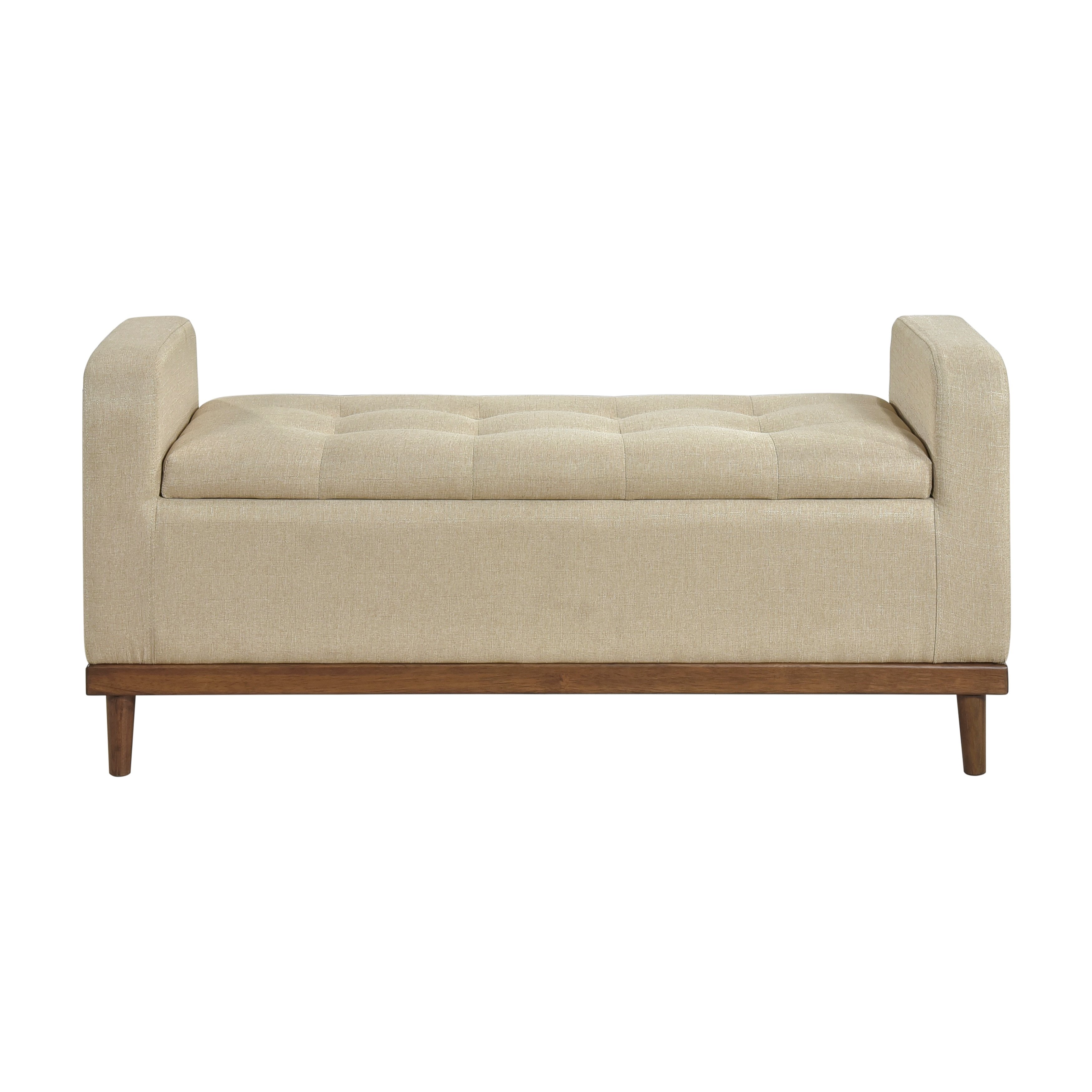 Home > Mid-Century Modern Lift Top Storage Bench 1pc Light Brown Upholstered Tufted Solid Wood Walnut Finish Wooden Furniture