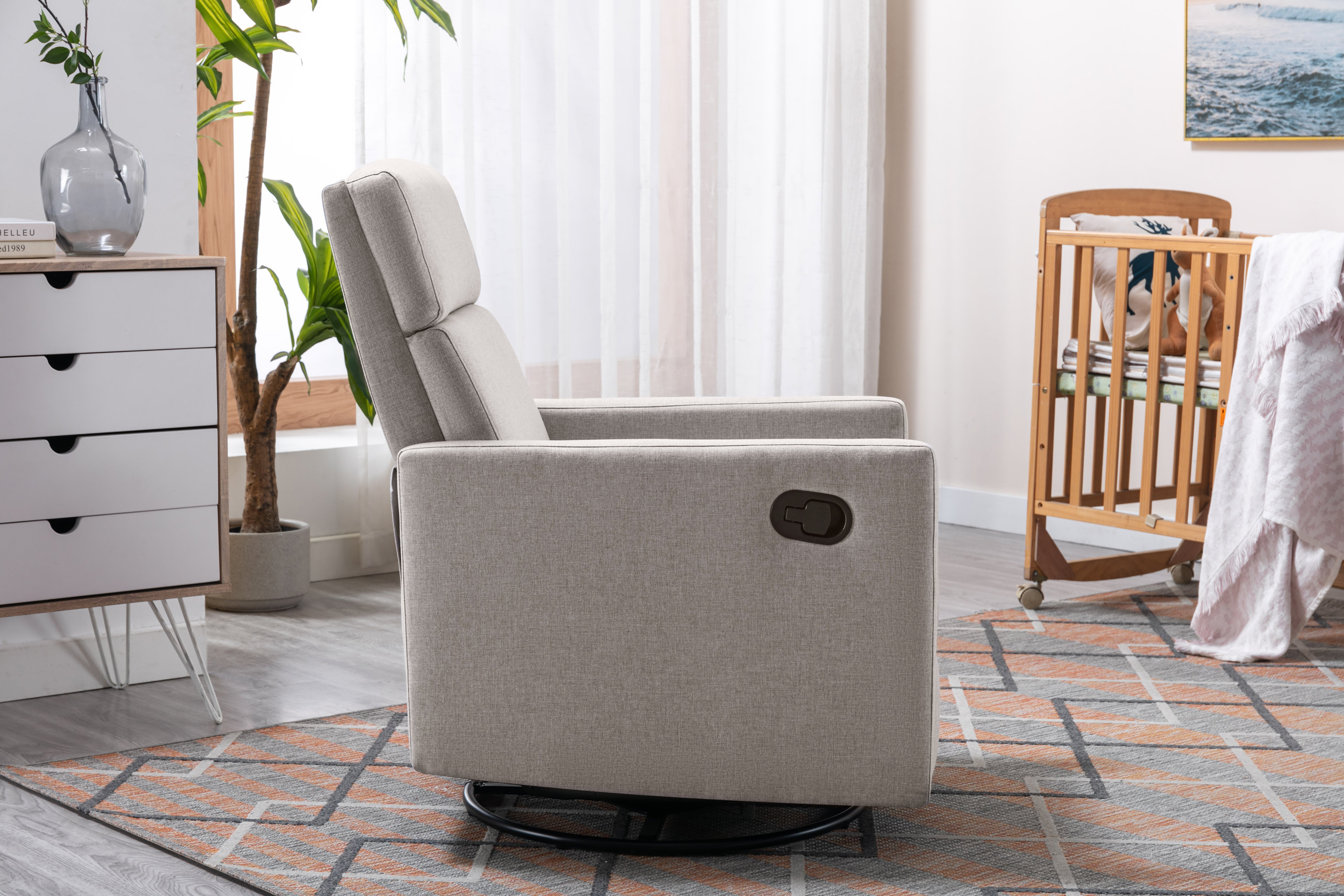 SUITABLE FOR MORE STYLES:With multiple color choices, the Nursery Glider Swivel Rocker Chair is deigned to naturally move from the nursery to the living room, master bedroom, or any other room that needs a cozy spot to relax.