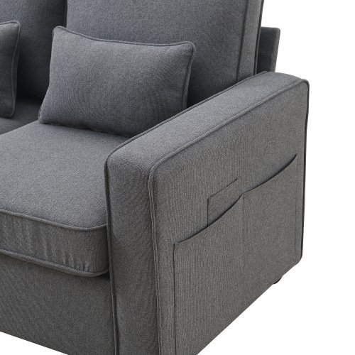 The modern and atmospheric design of this sofa can adapt to many kinds of decoration styles.Whether it is modern, classical, or personalized decoration it is very suitable.For more convenience, there are several storage pockets on the side of the sofa,they can make the environment look more neat.The large seat depth can brings you more comfortable feeling.