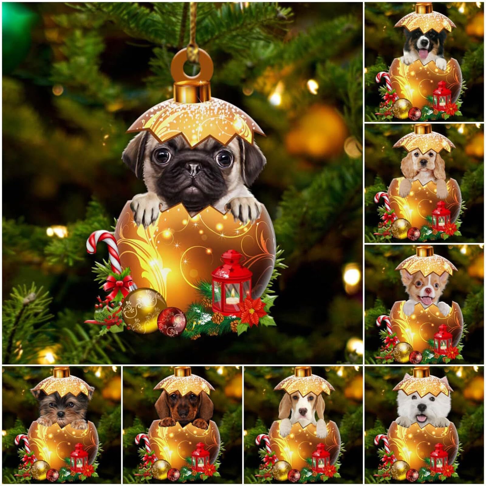 Christmas Cute Eggshell Dog 2D Acrylic Pendant, Unique Home and Christmas Tree Decoration