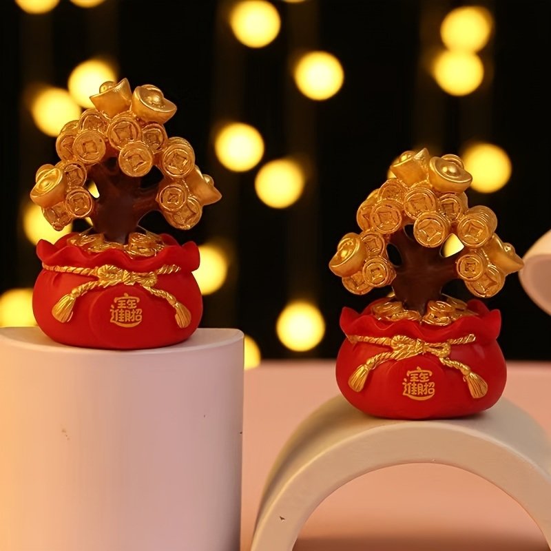 1pc Resin Wealth Tree Ornaments (2.68"√ó2.17"1.97"); Treasure Basin; Home Decorations; Holiday Gifts
