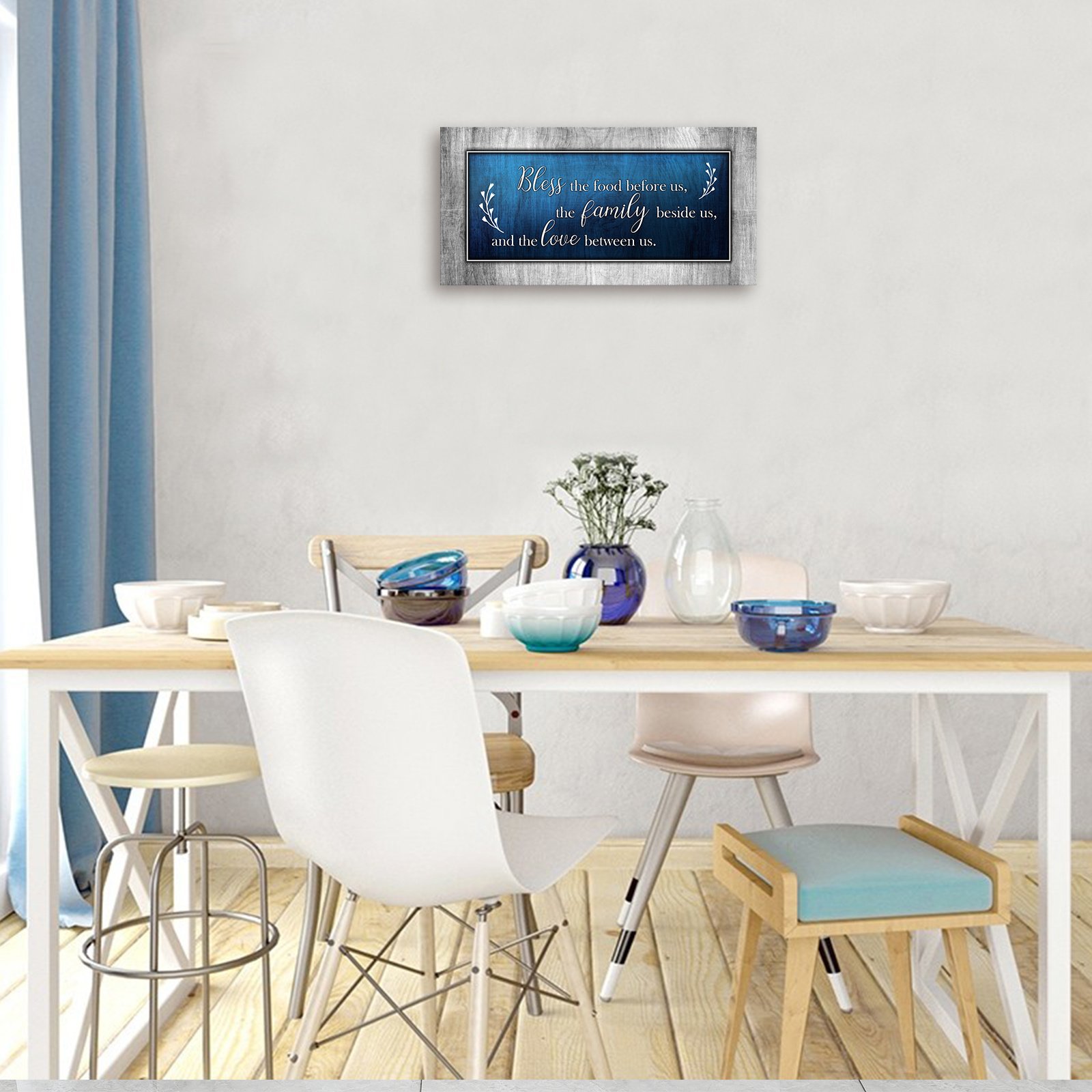 3.SIZE: 20inchx40inch or24x48inch or 30x60inch . The Print Word: "Bless the food before us, the family beside us, and the love between us", words to live by which will impress your family and friends while sharing a delicious meal. Christian canvas art wall decor gathers everyone around with a heartfelt family quote!