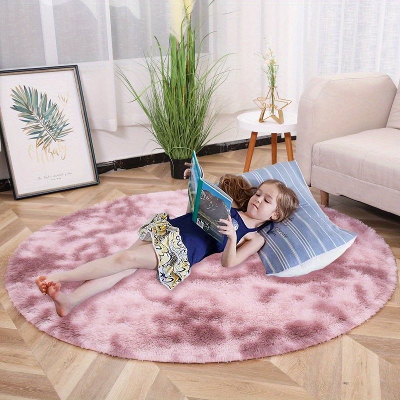 Home > 1pc, Tie-Dye Plush PV Velvet Area Rug, 62.99", American Style Round Rug, Floor Decor