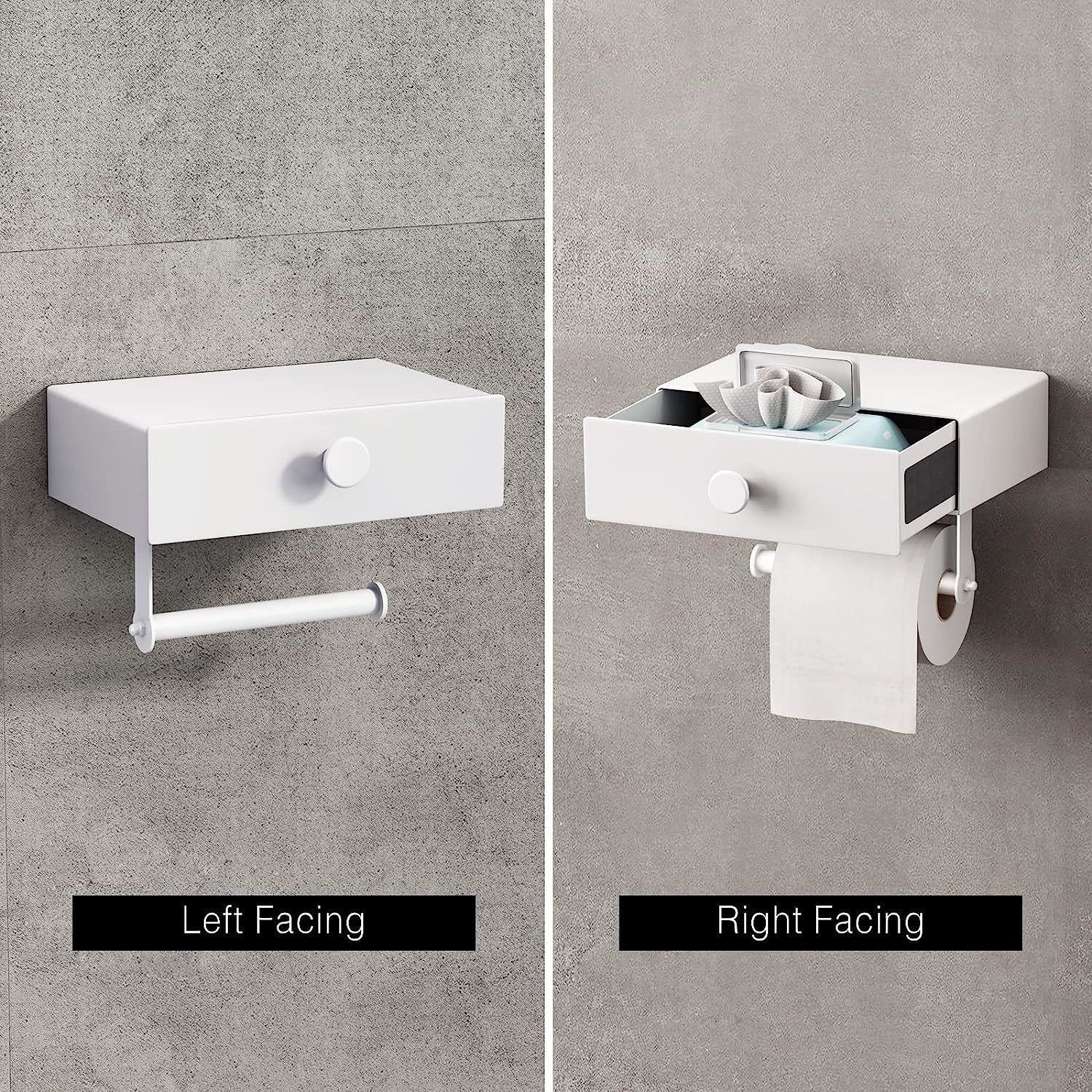 Compared with other Toilet paper holders on the market, you can directly put your mobile phone and Reed Diffuser or other items on our voldra toilet paper holder with a drawer, then open the drawer to get wet wipes at the same time, Free Your Hands!!