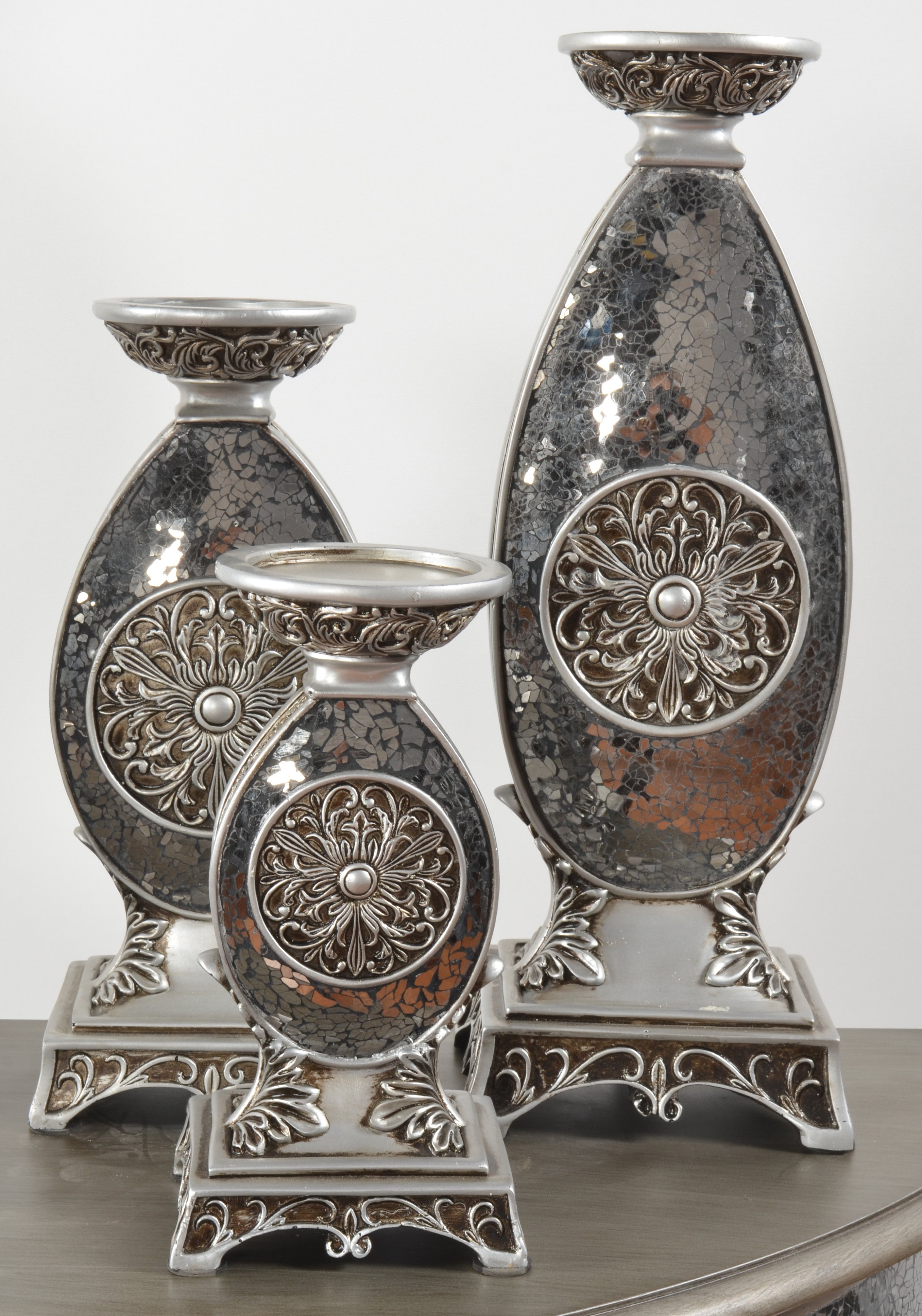 From the delightful Decorative Accessories Collection, we present the Estrada Candleholders Set Of three. This set is all about beauty mosaic details. The Estrada Candleholders will help define your home decor style with top of the line elegance.