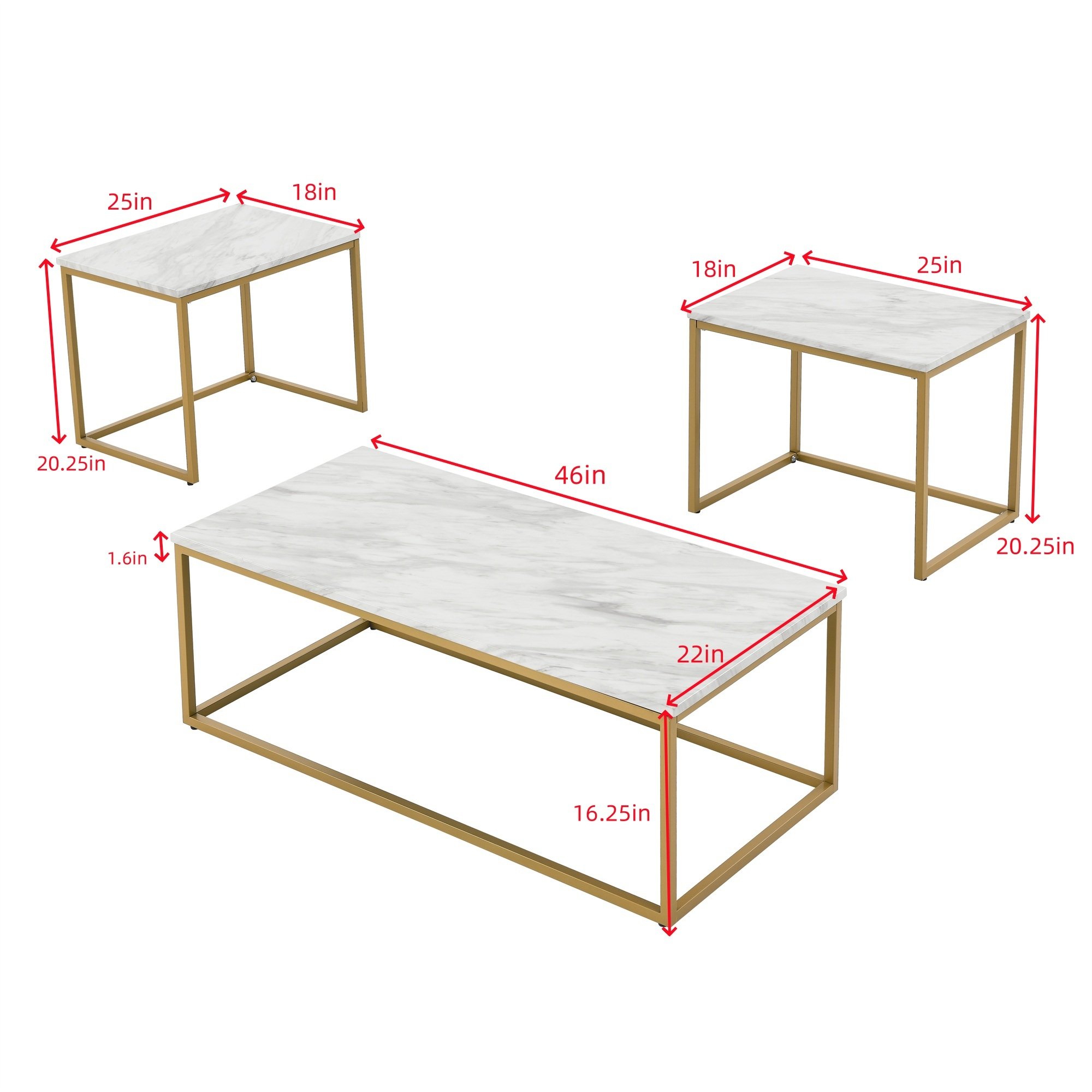 White Faux Marble Coffee Table Simple Modern 1pc Coffee Tables with 2pcs Table for Living Room and Office, White Gold